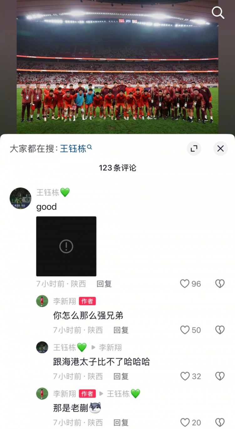 赛后队员李新翔在社交媒体发布球队合影及赛场照片,配文称:“首次身披五星红旗战袍登场,心情既激动又紧张,意识到自身诸多不足,未来仍需加倍努力。”