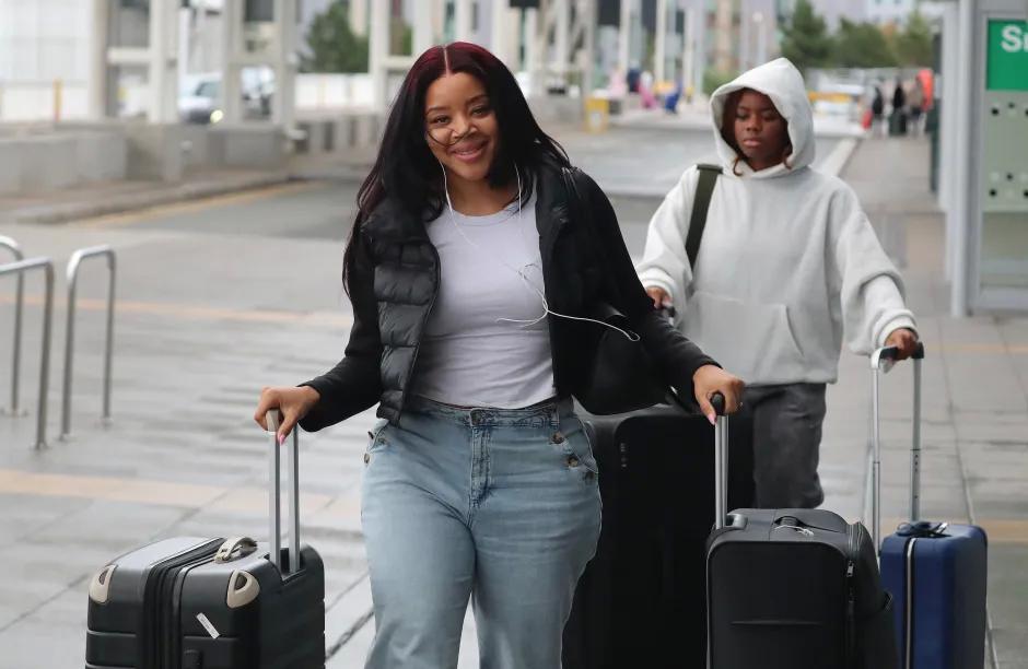 梅拉妮当天身穿白色上衣、蓝色牛仔裤和黑色夹克,在雨中的曼彻斯特现身,带着数个大号行李箱启程。她与奥纳纳期待在国外迎来新的开始。据媒体报道,奥纳纳还将在特拉布宗体育的租借合同中因特殊条款获得加薪。